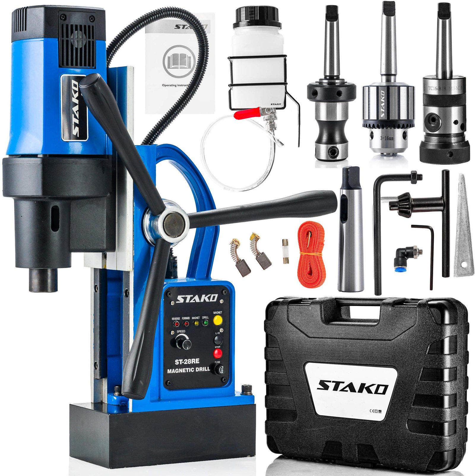 ✅ LEISTUNGSSTÄRKE – mit 1800 Watt Leistung meistert die STAKO ST-28RE Magnetbohrmaschine präzise Bohrungen in härtesten Materialien. Ihre kompakte Bauweise und der leistungsstarke Motor ermöglichen vielseitige Einsatzmöglichkeiten in anspruchsvollen Bereichen wie Stahlbau, Schiffsbau, Brücken- und Kranbau, sowie in der Eisenbahntechnik, bei der Errichtung von Windkraftanlagen, in Kraftwerken und auch in Kfz-Werkstätten. | ✅ PRÄZISE STEUERUNG – Die Magnetbohrmaschine verfügt über eine Soft-Start-Funktion, die das Gerät sowie die elektrische Installation vor Überlastung schützt. Die stufenlose Drehzahleinstellung mittels Potentiometer von 0 bis 550 U/min, zugänglich über das Kontrollpanel, ist ideal für den Einsatz von Bohrern unterschiedlicher Durchmesser. | ✅ STABILITÄT – die Kernbohrer, mit einer Magnetkraft von 16500 N (1650 kg) und Magnetfußmaßen von 200 x 105 mm, gewährleisten durch ihre außergewöhnliche Magnethaftung eine präzise und stabile Performance bei allen Bohrarbeiten. Ob horizontal, vertikal oder kopfüber – die zuverlässige Magnethaftung ermöglicht präzisionsgeleitetes Bohren unter sämtlichen Bedingungen, was den Einsatz auf Baustellen deutlich professionalisiert und optimiert. | ✅ SICHERHEIT UND HANDHABUNG – der STAKO Magnetbohrer verhindert mit einem Sicherheitsmechanismus das ungewollte Wiederanlaufen nach Stromausfall. Drei erweiterte Kurbeln ermöglichen präzise Einstellungen des Bohrers mit sicherem Griff und minimalem Kraftaufwand, was die Bedienung erleichtert. Dank der kompakten Bauweise ist die Maschine ideal für schwierige Arbeitsbereiche und leicht zu transportieren. | ✅ DETAILS – STAKO Magnetbohrmaschine, SET 3: Modell ST-28RE, mit Koffer. Gewicht: 20 Kg. Ersatzteile bei STAKO erhältlich. Wird in einem Karton geliefert.