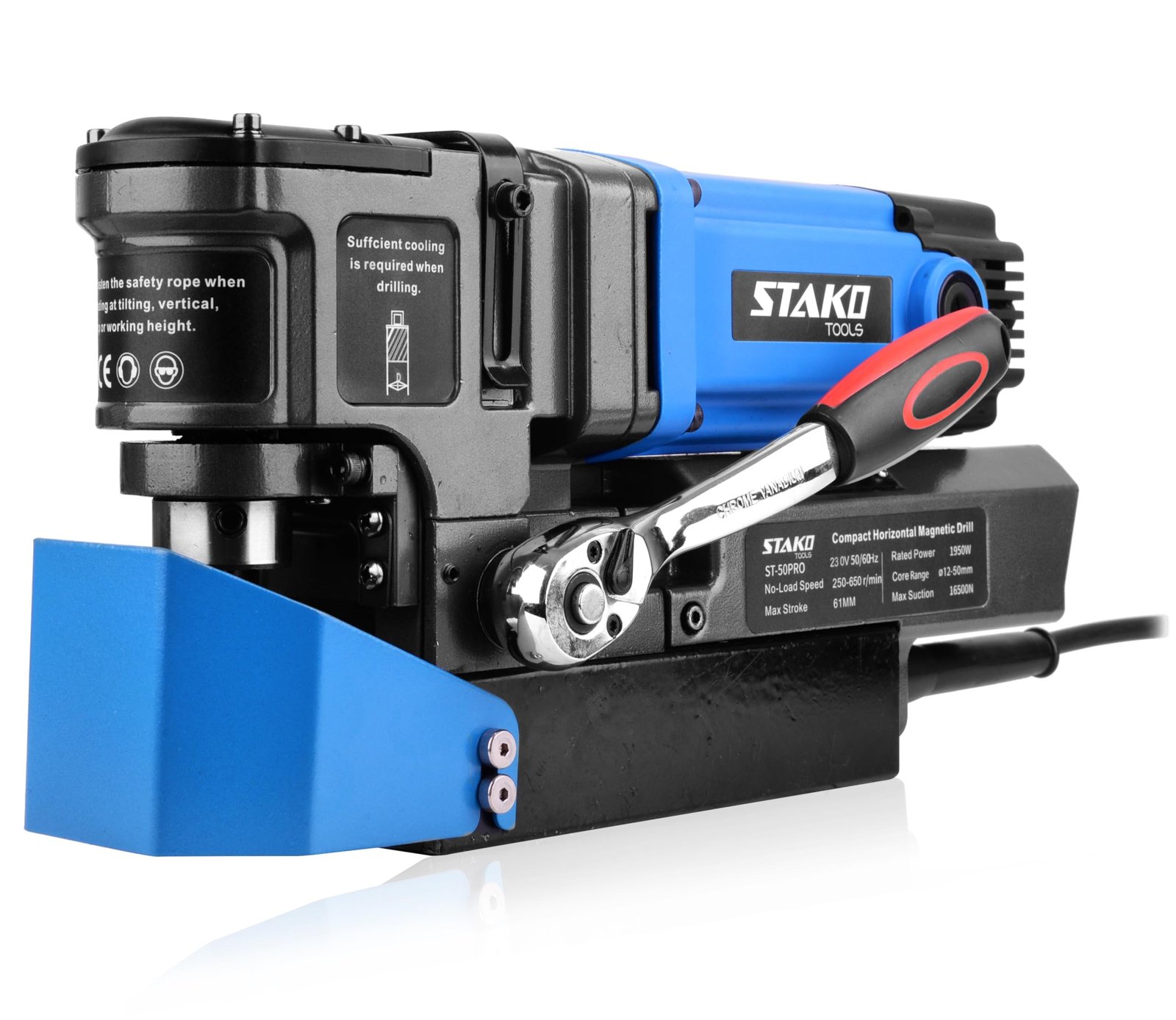 ✅ LEISTUNGSSTÄRKE – mit 1950 Watt Leistung meistert die STAKO ST-50RPO Magnetbohrmaschine präzise Bohrungen in härtesten Materialien. Ihre kompakte Bauweise und der leistungsstarke Motor ermöglichen vielseitige Einsatzmöglichkeiten in anspruchsvollen Bereichen wie Stahlbau, Schiffsbau, Brücken- und Kranbau, sowie in der Eisenbahntechnik, bei der Errichtung von Windkraftanlagen, in Kraftwerken und auch in Kfz-Werkstätten. | ✅ PRÄZISE STEUERUNG – Die Magnetbohrmaschine verfügt über eine Soft-Start-Funktion, die das Gerät sowie die elektrische Installation vor Überlastung schützt. Die stufenlose Drehzahleinstellung mittels Potentiometer von 250 bis 550 U/min, ist ideal für den Einsatz von Bohrern unterschiedlicher Durchmesser. | ✅ STABILITÄT – die Kernbohrer, mit einer Magnetkraft von 16500 N (1650 kg) und Magnetfußmaßen von 190 x 80 mm, gewährleisten durch ihre außergewöhnliche Magnethaftung eine präzise und stabile Performance bei allen Bohrarbeiten. Ob horizontal, vertikal oder kopfüber – die zuverlässige Magnethaftung ermöglicht präzisionsgeleitetes Bohren unter sämtlichen Bedingungen, was den Einsatz auf Baustellen deutlich professionalisiert und optimiert. | ✅ SICHERHEIT UND HANDHABUNG – der STAKO Magnetbohrer verhindert mit einem Sicherheitsmechanismus das ungewollte Wiederanlaufen nach Stromausfall. Dank der kompakten Bauweise ist die Maschine ideal für schwierige Arbeitsbereiche und leicht zu transportieren. | ✅ DETAILS – STAKO Kernbohrmaschine, Modell ST-50PRO, mit Koffer. Gewicht: 10 Kg. Ersatzteile bei STAKO erhältlich. Wird in einem Karton geliefert.